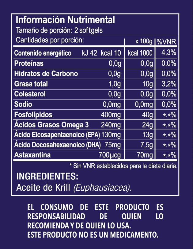 El Aceite Alaskan Krill es un complemento alimenticio que contiene el aceite, extraído en frío, del krill (Euphausia superba),