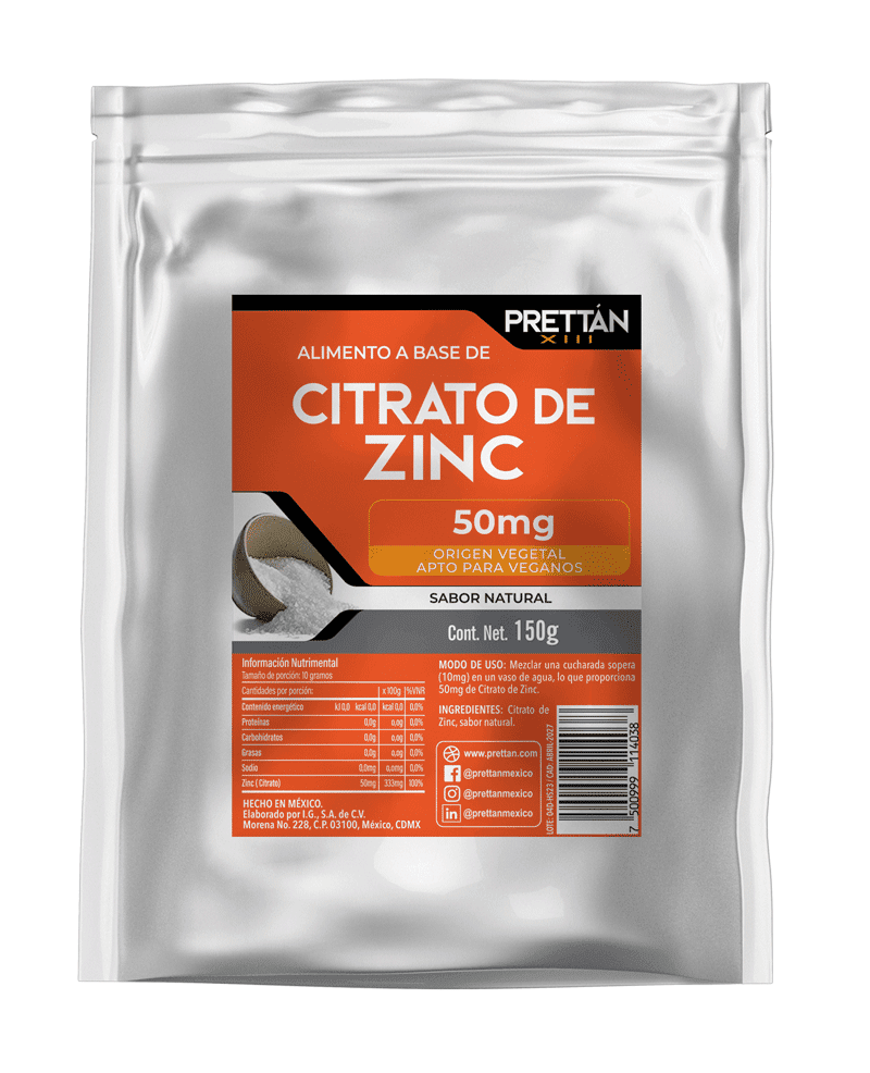 El Citrato de Zinc es una forma con alta biodisponibilidad. Se encuentra en modo soluble y orgánicamente quelada, obteniéndose cerca de un 45% de absorción. Los minerales citratos presentan una adecuada disponibilidad hasta en personas con mala digestión, ya que necesitan menos cantidad de ácido estomacal para su asimilación.