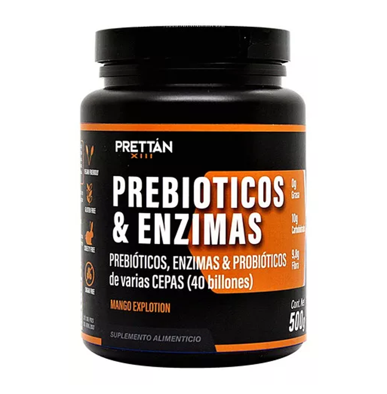 Inulina de Agave (Prebiótico), Fructo Oligo Sacáridos (Pre Biótico), Papaína, Linaza, Bromelina, Actidina, Lipasa, Polifenol Oxidasa, Sabor natural Fresa Colada.